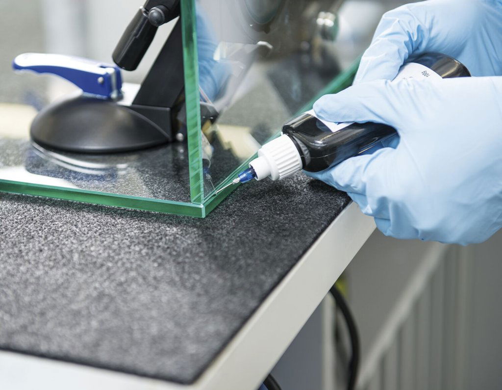 Der LV 740 ist ein UV-härtender Klebstoff, der sich besonders für Glas-Glas-Verklebungen eignet. Er erzeugt extrem glasklare, vergilbungssichere Kanten und ist dank guter Feuchtigkeitsbeständigkeit auch für Innenräume wie Badezimmer, Vitrinen oder Kühltheken geeignet.