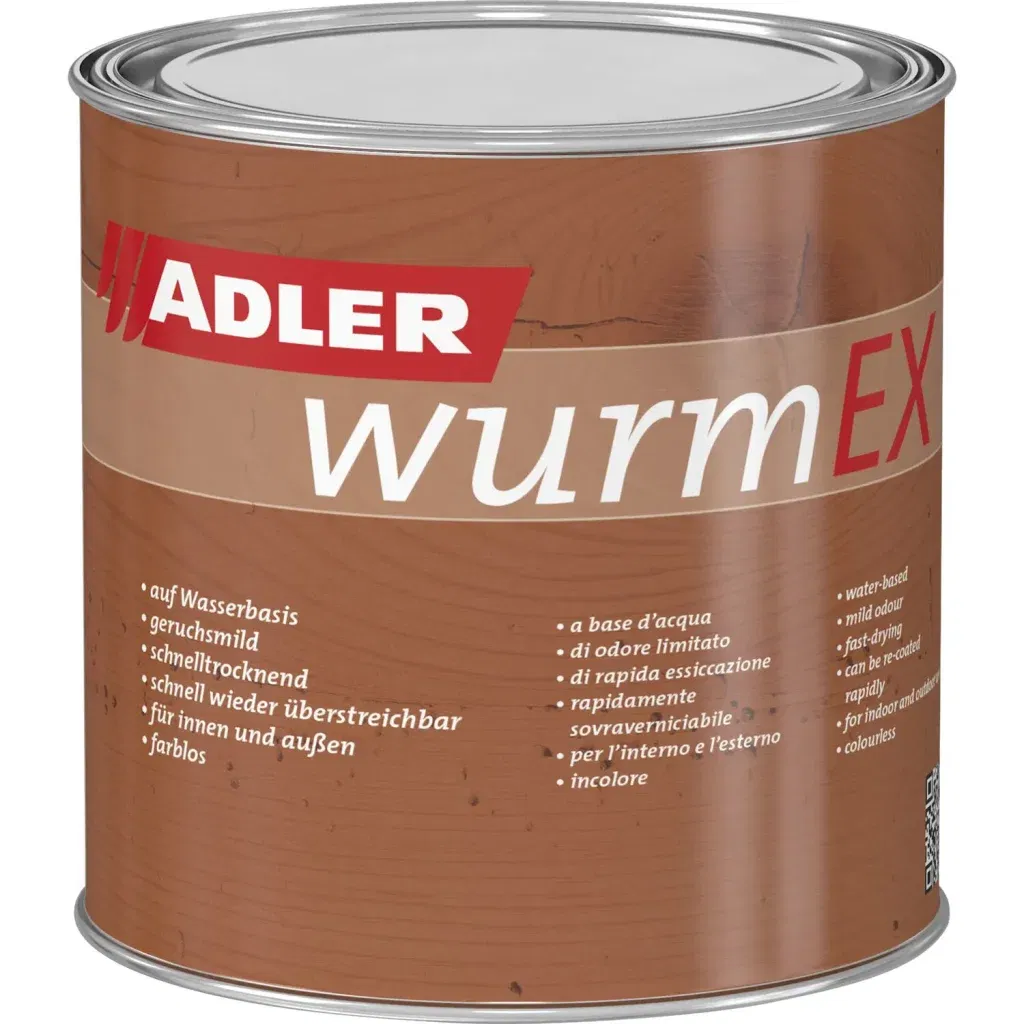 Wurm Ex von ADLER ist ein wirksames Holzschutzmittel zur Bekämpfung und Vorbeugung von Holzschädlingen im Innenbereich.