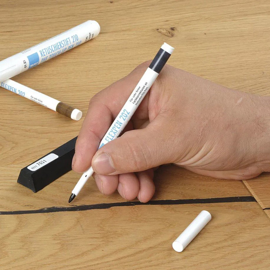 Retuschierstifte von BAO ermöglichen präzise Ausbesserungen von kleinen Kratzern, Kantenbeschädigungen und Farbfehlern auf Holz- und Kunststoffoberflächen.